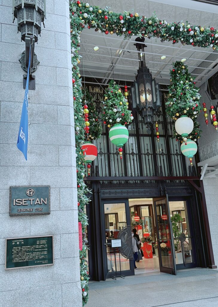 伊勢丹がクリスマスディスプレイになってました♡提灯とツリーがミックスされて素敵でした。