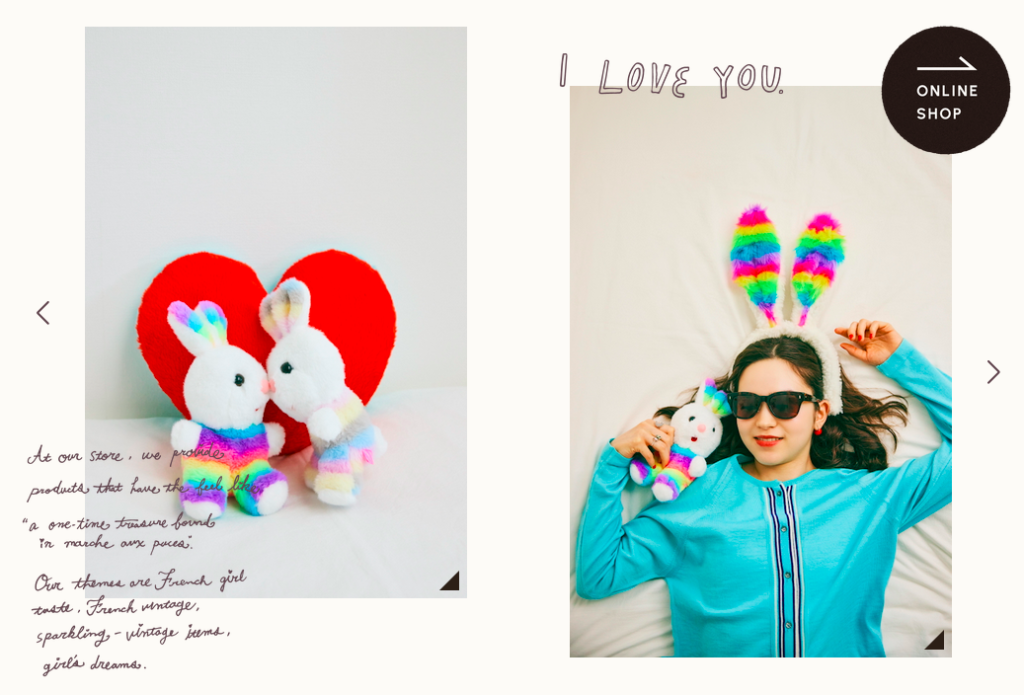TOP PAGEをリニューアルしました。フォトグラファー角田明子さんに撮影していただいたSuper Cuteなレインボーシリーズです♡うさ耳のミントちゃんにうっとりしますね!