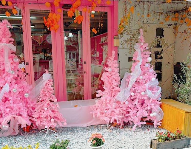 原宿をブラブラしていたらピンクのツリーが沢山飾ってありました。今日はアトリエでケーキを食べます♪