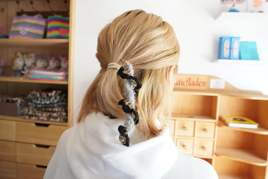 甘くなりすぎない配色なので、まとめ髪やポニーテールのアクセントに最適ですよ。