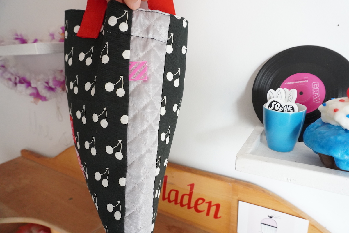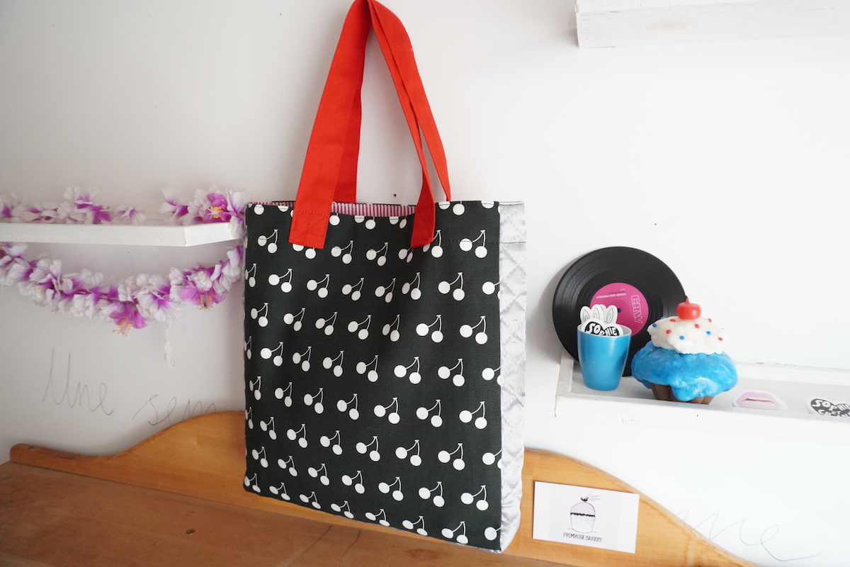 オリジナルのチェリー柄を全面に使用したサイドマチバッグが仕上がりました!