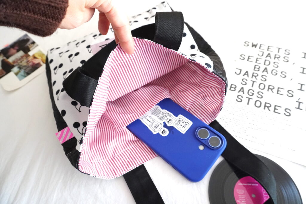 しっかりとした生地感とマチ付きデザインで、日常使いにちょうどいいサイズ感。