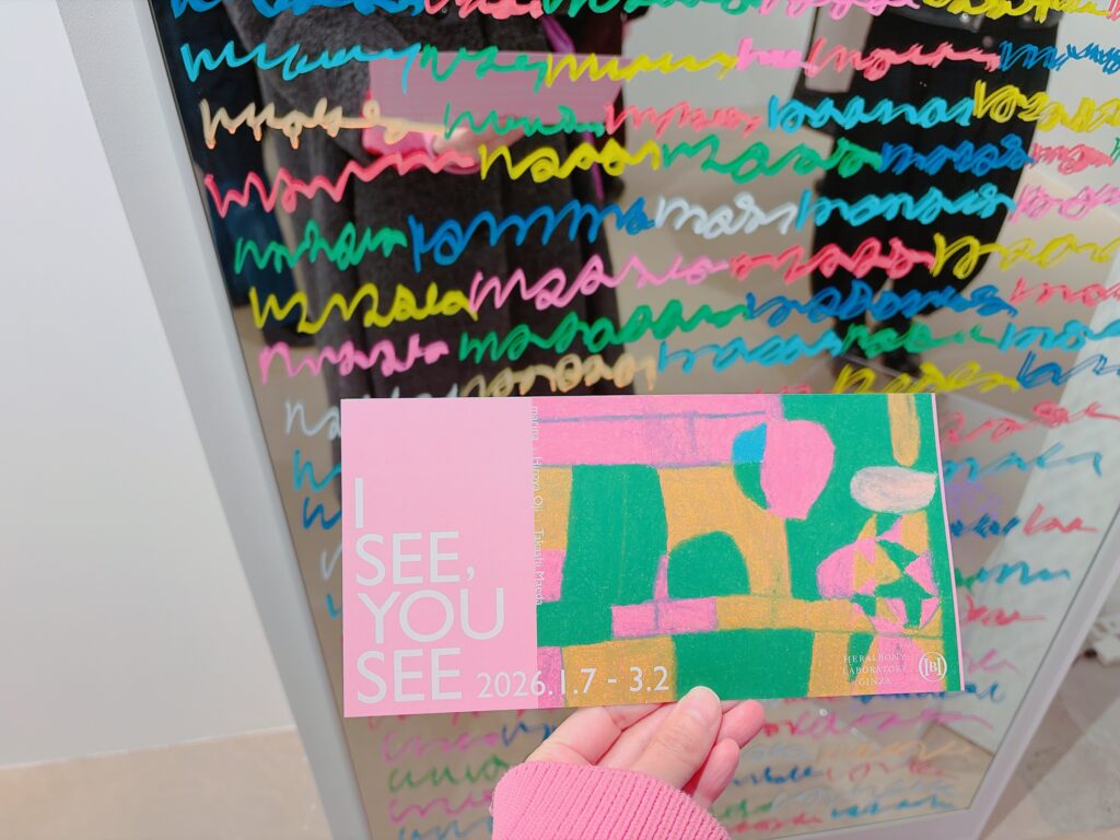 ヘラルボニー銀座ギャラリーで開催中のI SEE ,YOU SEE展へ。私はmarinaさんの作品に胸を打たれました。色使いはもちろん、とても大事なメッセージが込められているかもしれない文字をずっと眺めている時間が温かかったです。このミラーとか天才!3月2日まで!
