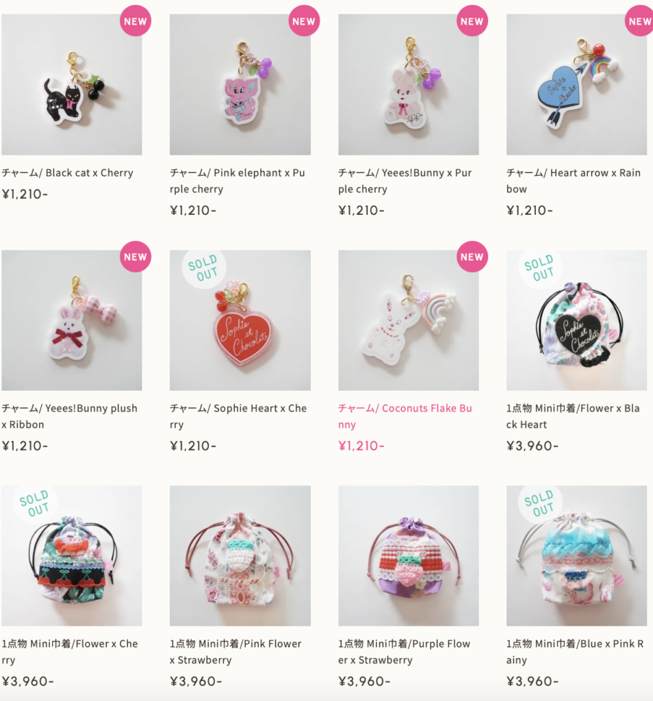 new itemsカテゴリーに巾着ポーチやカラフルなチャームが追加されました!