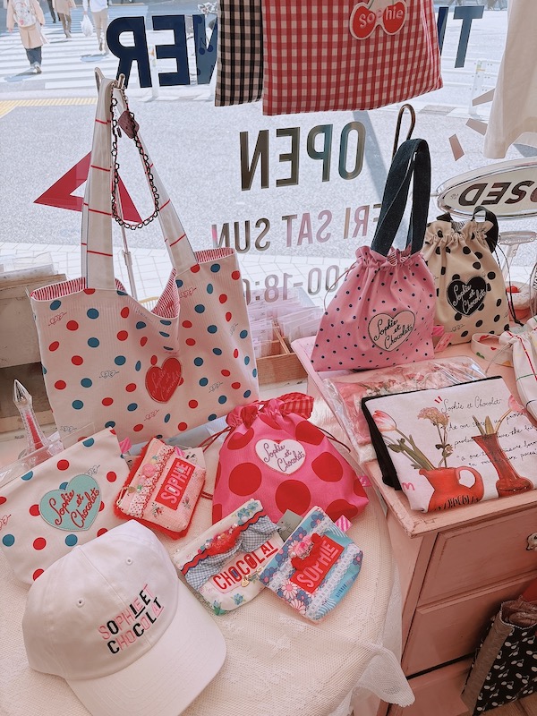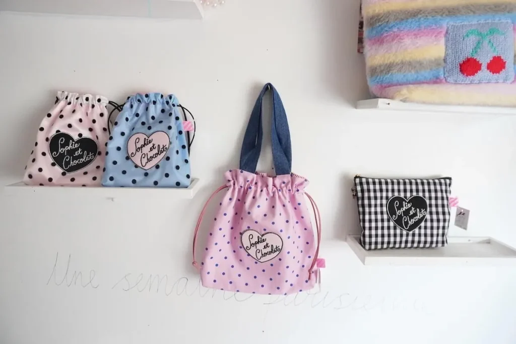 新作の巾着バッグは、お店だとこのようにディスプレイされています。
