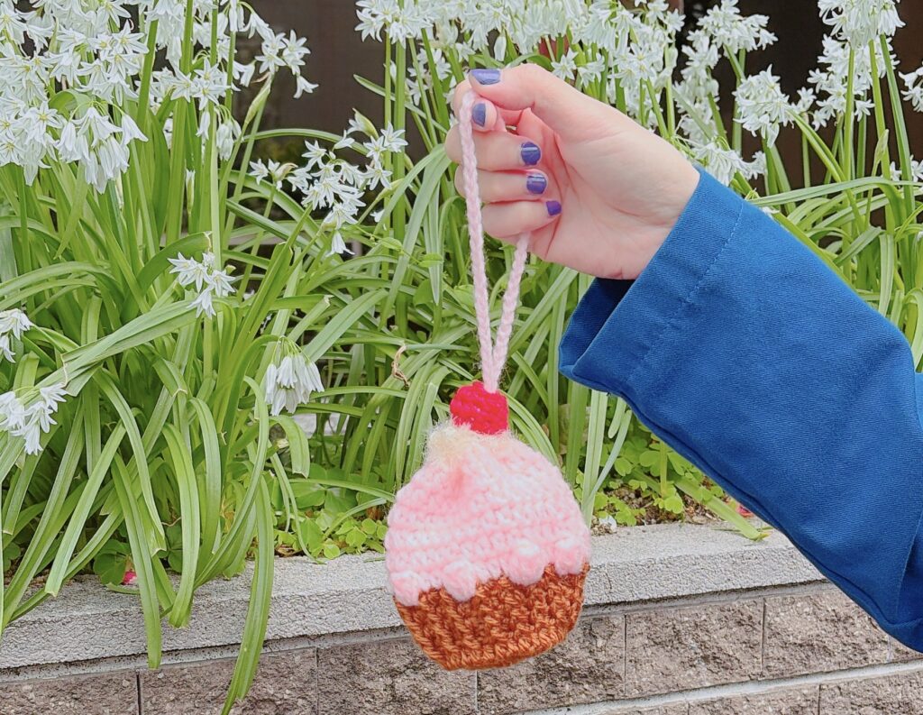 カップケーキ巾着を持ってお出かけしました♪リップ、ミラー入れにしているのですが、使う度にチェリーが動くので色んな人に可愛いねって言われます。皆様も是非〜❤️