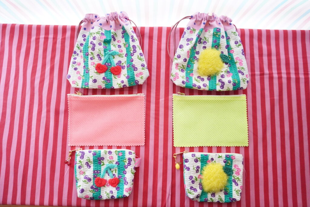 本日、NEWカテゴリーに新作ポーチを6点UP予定です。貴重なヴィンテージチェリーのファブリックに手編みのワッペンをトッピングしました。メッシュポーチはカードや小さなコスメ入れにいかがですか?